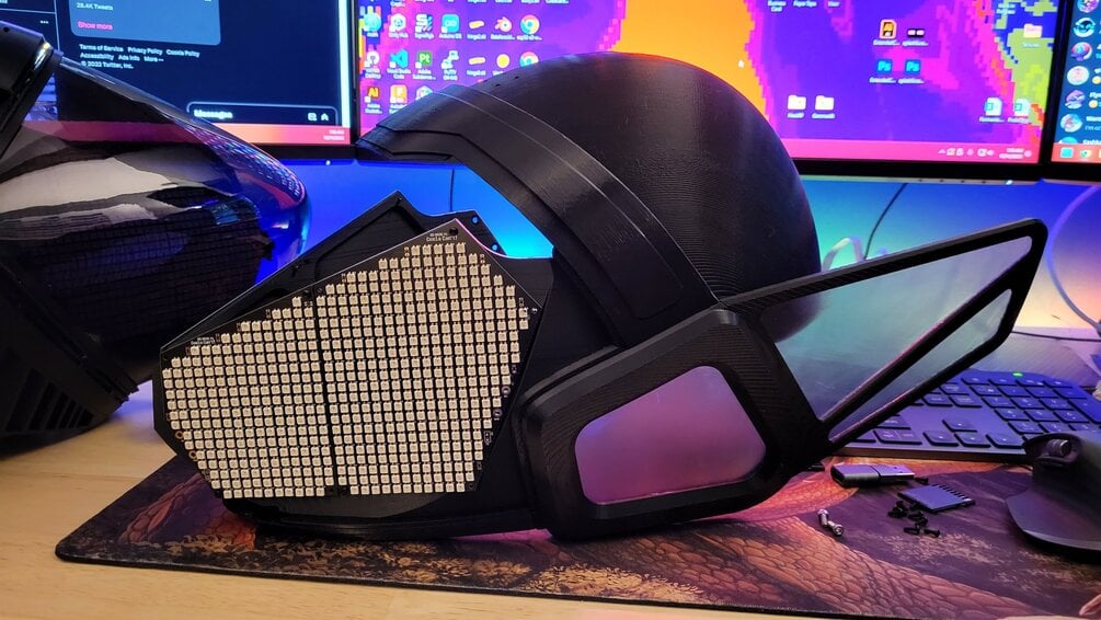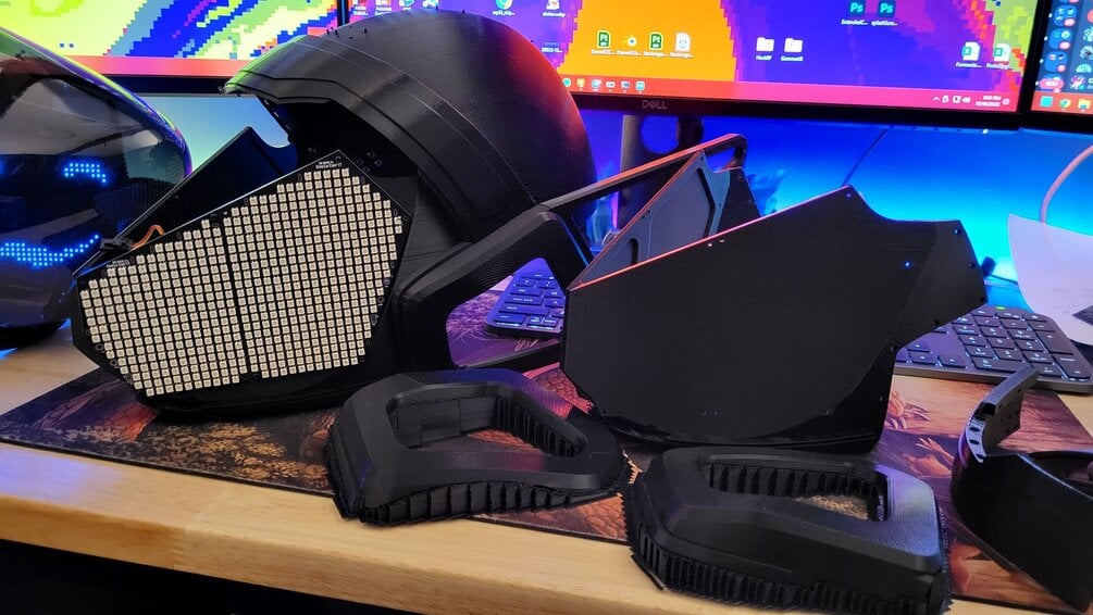 The Epsilon Protogen supports a wide range of LED panels including HUB75 LED panels, custom WS35 LED panels, and the standard MAX7219 LED matrices. With the STL files pre-oriented and split, and the vacuum-forming buck design optimized, you can now easily create your own PETG visors.