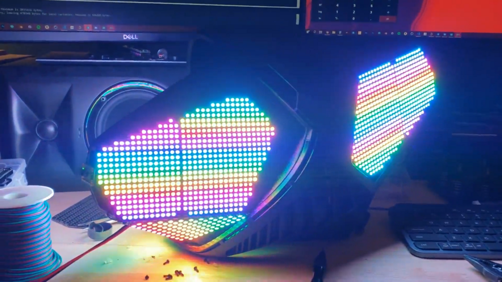 This design differs from the single color version in that it uses custom LED boards that you will need to order from JLCPCB - don't worry instructions and all design and placing files are included and is easy! With these boards, you can utilize my ProtoTracer software to use raytracing to render live graphics that can react to your voice, motion, or transition smoothly between different face shapes just like VRChat avatars - it even uses FBX files! Don't worry the software is free and can be found here: https://github.com/coelacant1/ProtoTracer